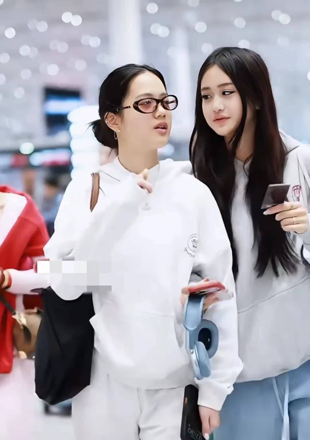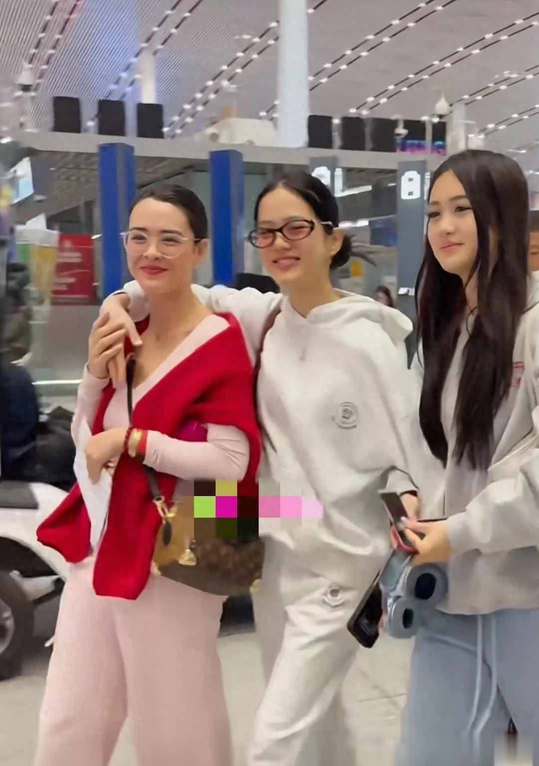 大女儿成熟大方,完美继承妈妈的神颜,气质妩媚又自信;二女儿清冷高级,自带韩剧女主范儿;小女儿甜美灵动,青春感爆棚。三姐妹风格不同,但个个貌美如花,站在一起就是机场最亮眼的风景线。