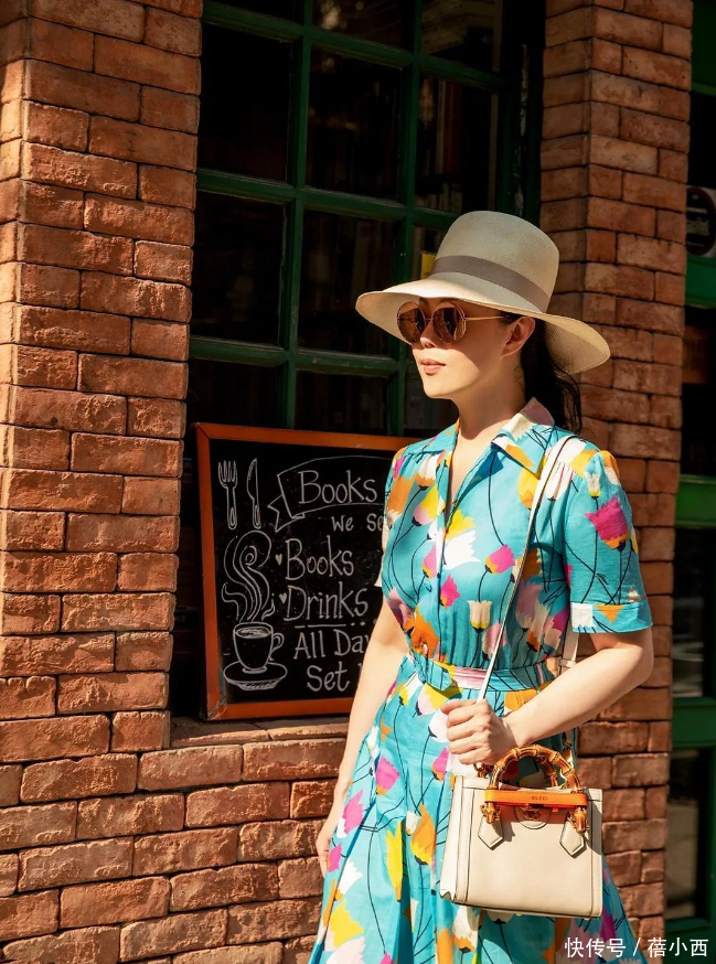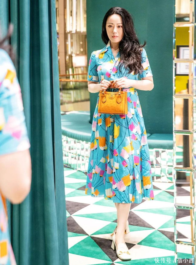 这件裙子其实本身的颜色有点过于花里胡哨,也只有章小蕙的气场可以压住了。