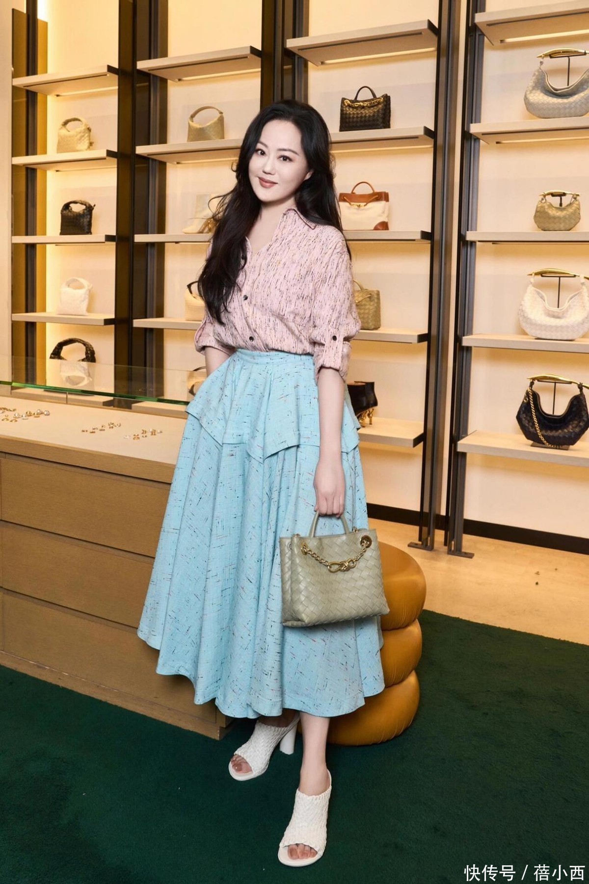 下半身章小蕙搭配了一条蓝色的半身裙,这条裙子比起其他半身裙的优雅,更多了许多童话与梦幻的色彩,而且也更加符合这一套造型的蓝粉配色。