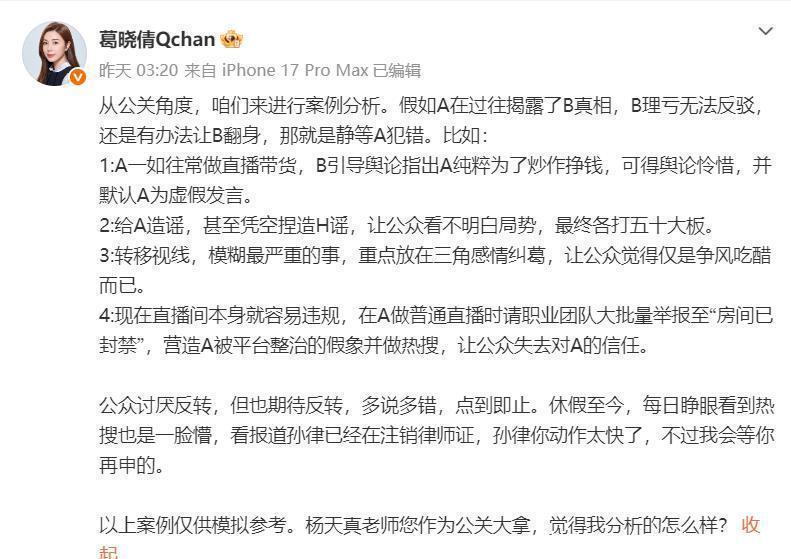 要知道,张雨绮曾是圈内公认的“敢言代表”。罗志祥塌房时,她剪八爪鱼暗讽渣男;俞敏洪发表争议言论,她直接点名批评“北大教育没教会你尊重女性”;面对职场不公,她多次公开力挺弱势群体。那时的她,是独立、清醒、有态度的代名词。可如今,轮到自己站在风口浪尖,她却选择了彻底隐身。网友从最初的“等她解释”,变成“她是不是真的做了不敢说的事”,再到如今的“品牌撤代言、春晚除名、综艺被换”——沉默的代价,正在以肉眼可见的速度吞噬她的事业版图。尤其“代孕”指控一旦坐实,后果不堪设想。参考几年前某郑姓女星因代孕被全网封杀、远走海外的案例,行业对这类触及法律与伦理红线的行为,几乎零容忍。即便最终查无实据,只要公众心中种下怀疑的种子,形象就再难修复。更耐人寻味的是,连葛晓倩都公开喊话杨天真:“给你列了四种公关方案,怎么还不动手?”——这哪是控诉,分明是逼宫。而杨天真的沉默,或许比张雨绮本人的不回应更说明问题:要么证据确凿无法辩驳,要么内部已放弃危机公关,准备切割止损。