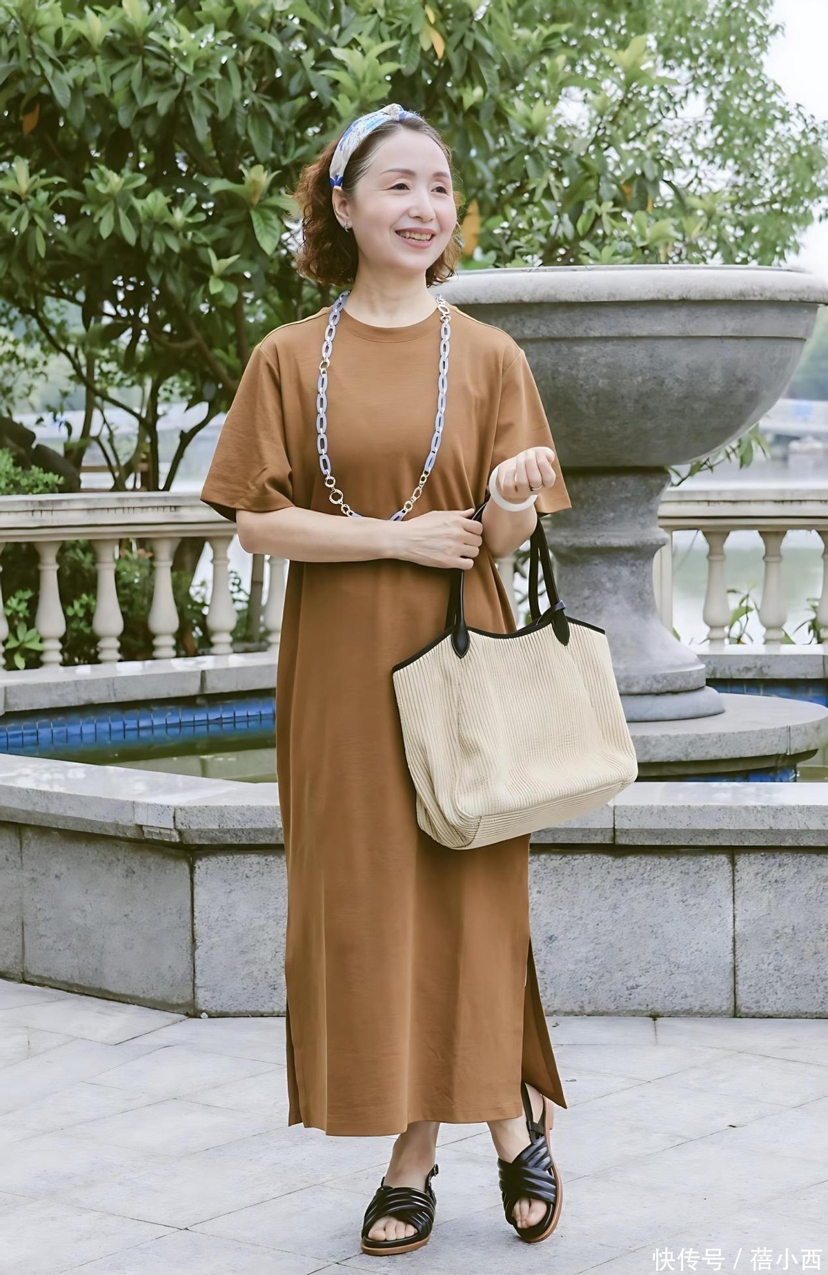 简约的设计和自然的颜色让整体看起来特别温柔,裙摆轻轻垂下,既显气质又方便活动。搭配一双黑色平底鞋,走路轻盈又自在,手里的竹扇增添了几分夏日风情。无论是散步还是约朋友,这身打扮都让人感到放松又漂亮。